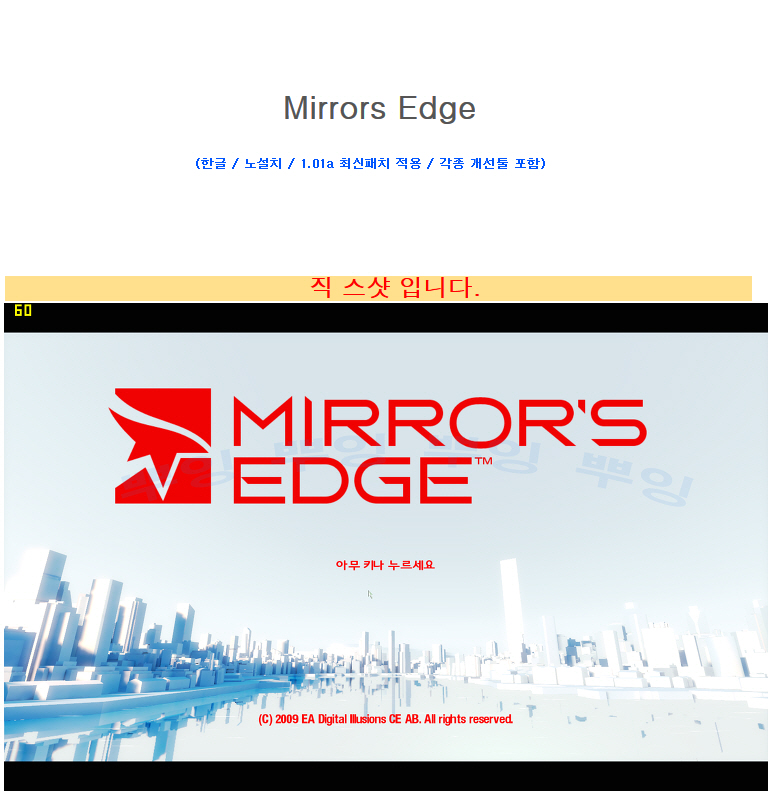 sports_esports 게임 도심속을 질주하자 미러스 도심속을 질주하자! 미러스 엣지 한글 노설치! 야마카시 지존게임! Mirrors Edge person qnwkekd1 calendar_today 2026.01.01 visibility 5,502 다운로드 1개 파일 folder_zip Mirror's Edge.egg 7.5G download