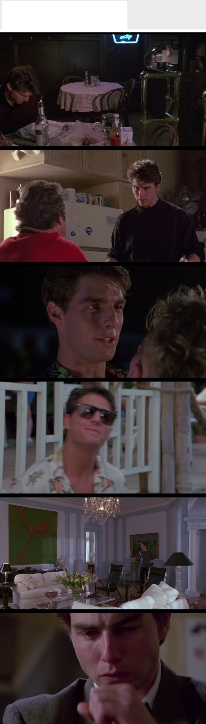 군복무를 마친 패기만만한 브라이언(Brian Flanagan: 톰 크루즈 분)은 사회에 나오자마자 대학 졸업장이 없다는 이유로 뉴욕의 모든 회사에서 거절당하는 좌절감을 맛본다. 밤에는 바텐더로 일을 하면서 대학을 다니지만 현실 속에서 대학 졸업장이 별 의미가 없다고 느끼고 본격적으로 돈을 벌기로 결심한다. 술집 매니저인 커글틴(Doug Coughlin: 브라이언 브라운 분)과 친형제처럼 지내지만 돈 많은 여자를 사귀어서 성공하겠다는 커글린의 인생관에는 거부감을 느낀다.