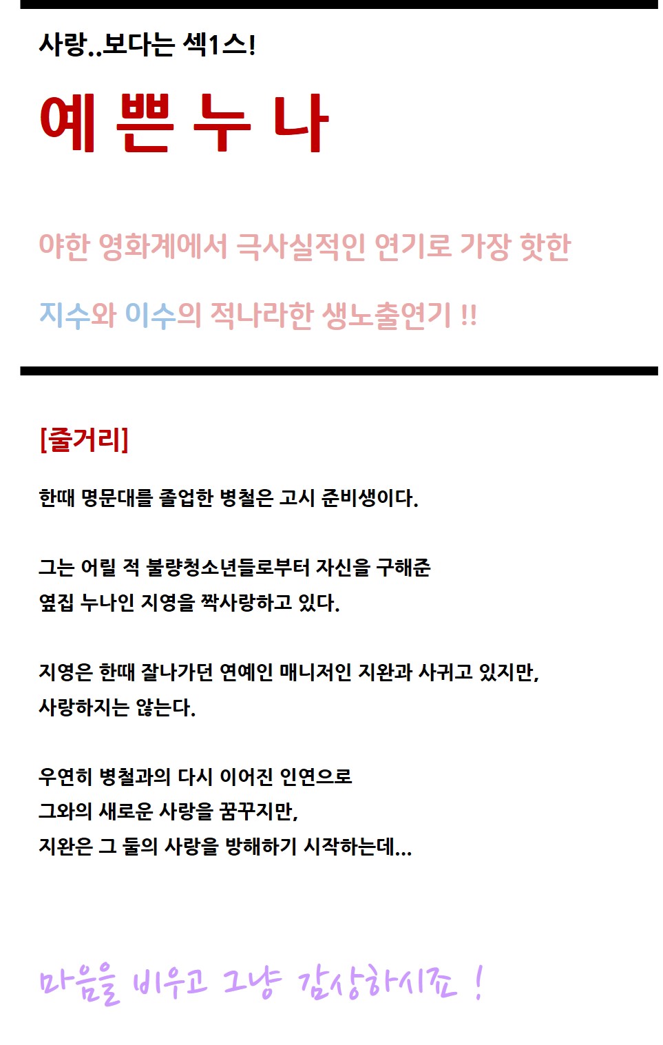 movie 영화 별 5개짜리 테크닉 (별 5개짜리 테크닉) 동생잡아먹는 예쁜누나1114 person nowcontents calendar_today 2026.01.01 visibility 5,357 다운로드 1개 파일 folder_zip 예쁜누나_1080p.mp4 3.2G download