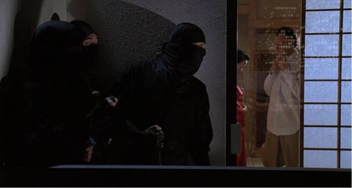2백 년 전, 일본에 마케도와 다케다라는 두 사무라이 집단이 있었다. 이 두 세력은 한 쪽이 멸망할 때까지 서로를 죽여왔고, 이들 사이의 힘겨루기는 후대까지 지속적으로 이어져 내려온다. 출장 때문에 일본을 방문한 라씬은 호텔 바에서 신비한 동양 여인을 만나 하룻밤을 보낸다. 그 정열이 채 가시기도 전에 라씬은 보지 말아야 할 것을 보아 버린다. 검은 복면을 하고 검은 옷을 입은 사무라이들이 긴 일본도로 여인의 목을 내려쳐 버린 것이다. 사무라이 중 복면을 하지 않은 킨죠는 자신의 얼굴을 본 라씬을 내려치곤 달아난다.